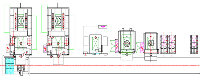 多用爐生產線一般由密封多用箱式爐、(真空)清洗機、高低溫回火爐、送料小車、備料臺等組成。